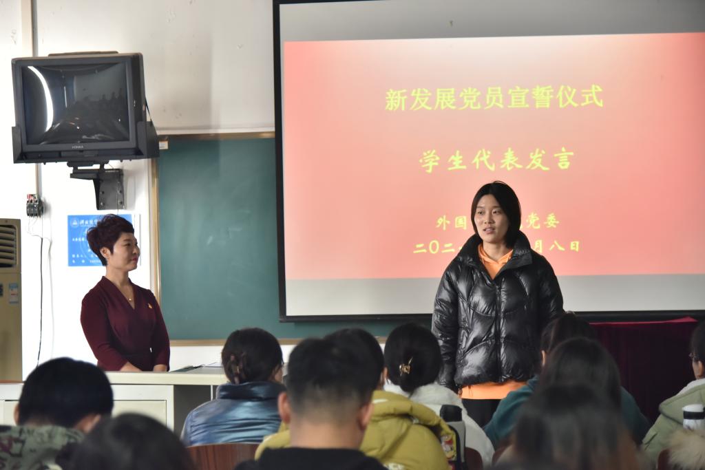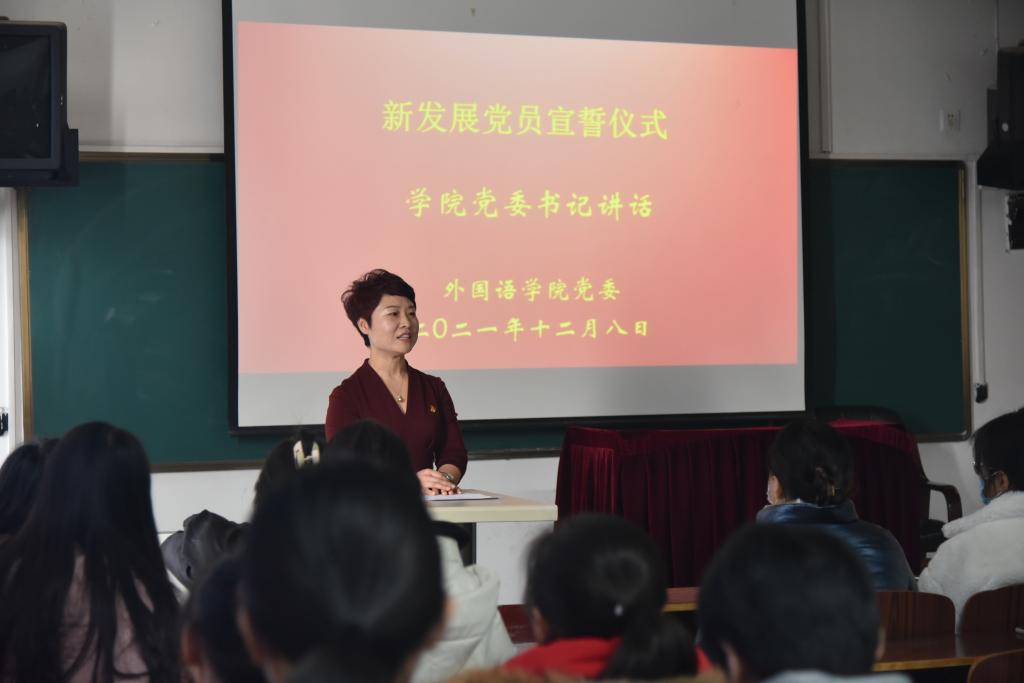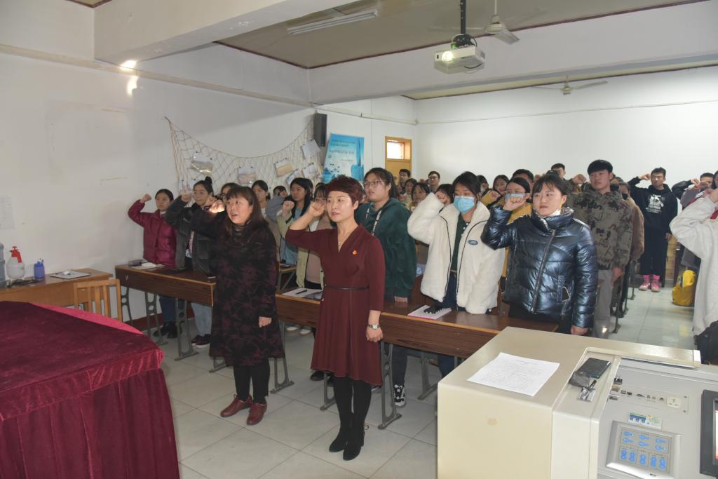 12月8日,beat365亚洲版官方网站新发展党员宣誓仪式在4教204举行,仪式由学院党政办公室田晓光老师主持,学生第一支部书记康文霞领誓,党委书记刘会娟讲话,学生党支部书记和64名新发展学生党员参加。