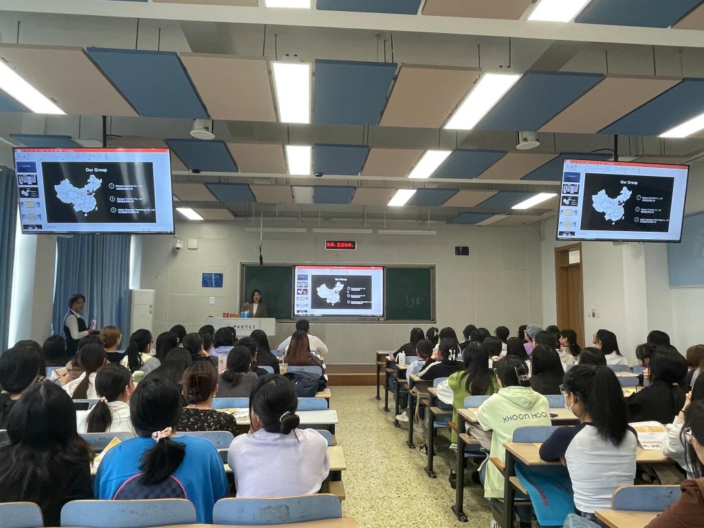 石家庄文泰经贸有限公司成立于2004年2月16日,主要经营范围有日用百货、工艺品、文化艺术交流策划以及代理各类商品和技术的进出口业务等等。人事部经理杨云昭从公司简介、岗位职责、任职要求、发展前景以及工资薪酬等几个方面向同学们进行了系统的讲解。