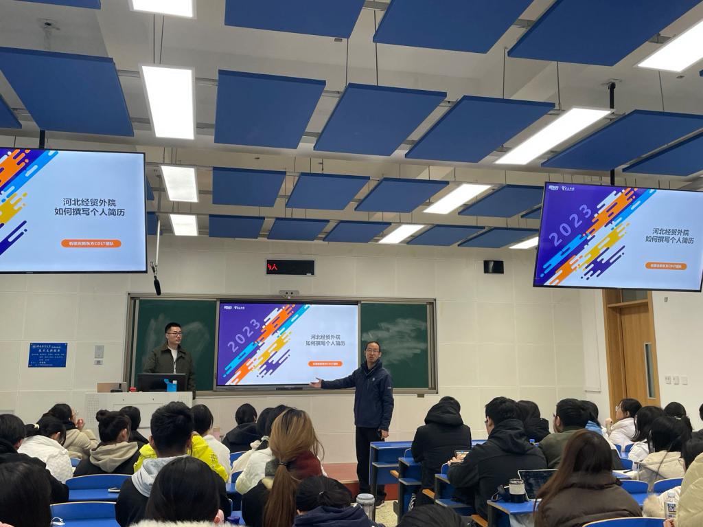 为提升学生就业技能,提高简历制作能力,提高综合竞争力,beat365亚洲版官方网站于11月24日在B教103举办办题为“青春启航,职引人生”简历提升培训讲座。学院党委副书记刘磊、就业联络员冯晓伟老师、100余名学生代表参加讲座。