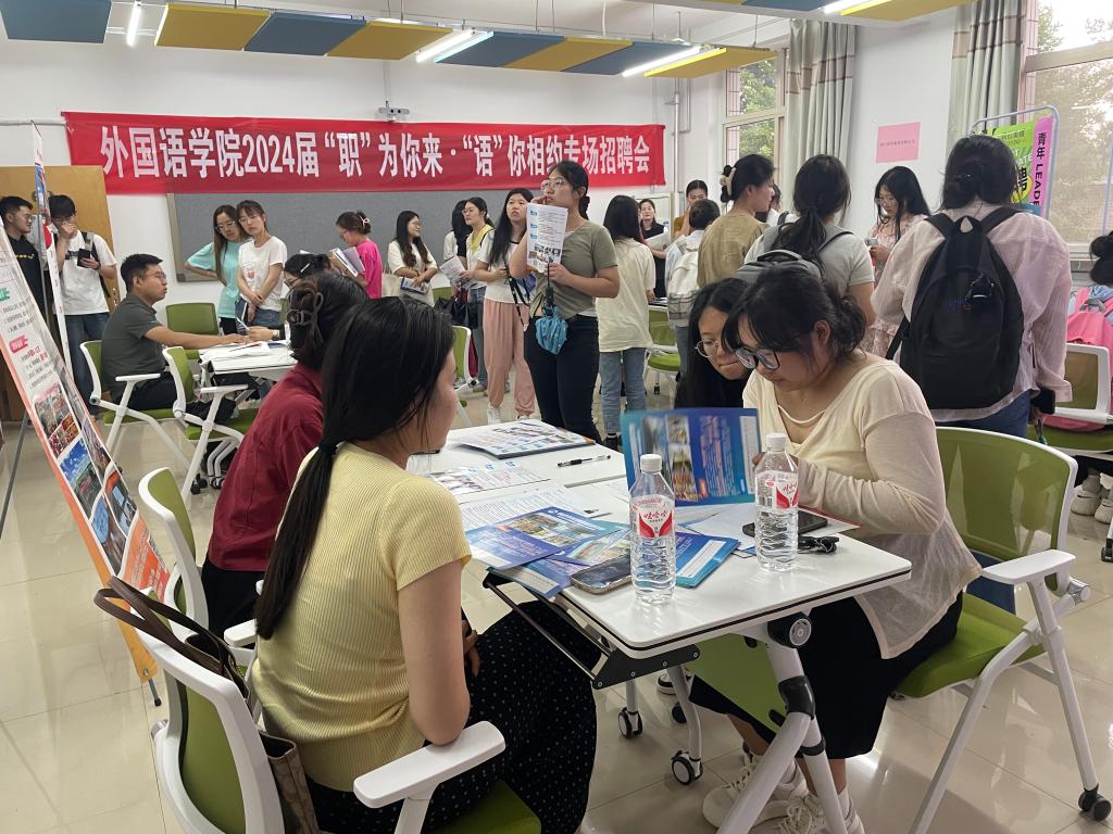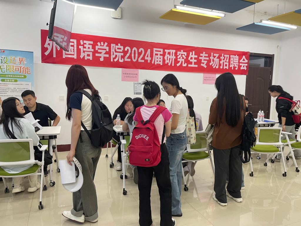 为认真落实教育部、省教育厅“稳就业”“保就业”决策部署,搭建毕业生与用人单位双向选择平台,进一步促进2024届毕业生高质量充分就业,助力用人单位高效选聘,beat365亚洲版官方网站于5月10日举办“职为你来·语你相约”外语类专场招聘会。