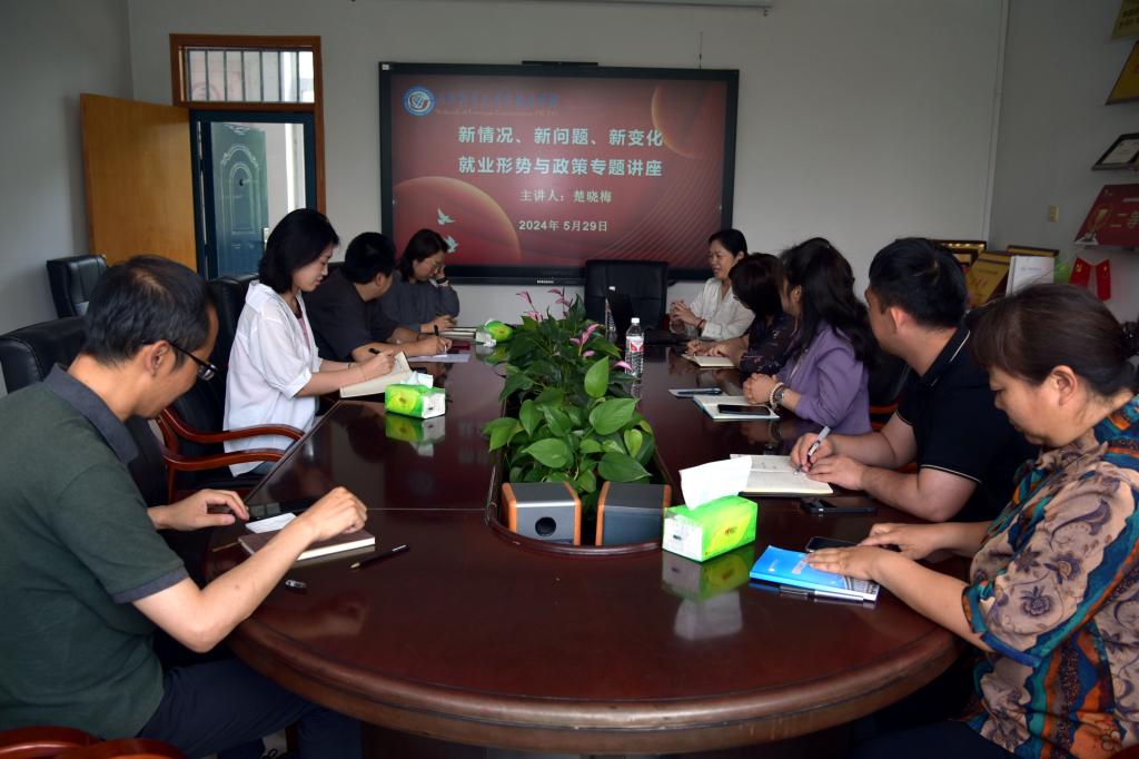 5月29日上午,beat365亚洲版官方网站召开就业新情况、新问题、新变化——就业形势与政策专题讲座,学校就业指导服务中心就业指导科科长楚晓梅主讲。学院党委书记仇静莉、党委副书记刘磊、全体辅导员参加。