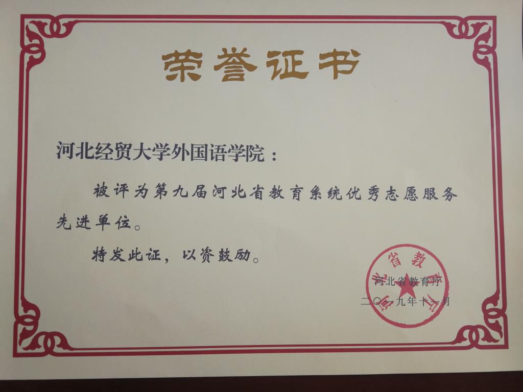 第九届河北省教育系统优秀志愿服务先进单位,这是beat365官网首次获此殊荣。