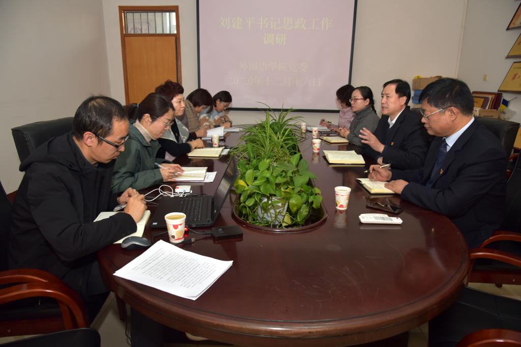 12月16日下午,校党委副书记刘建平等一行4人作为联系领导到beat365亚洲版官方网站进行思想政治工作调研,beat365亚洲版官方网站党委书记、副书记及全体辅导员参加座谈。