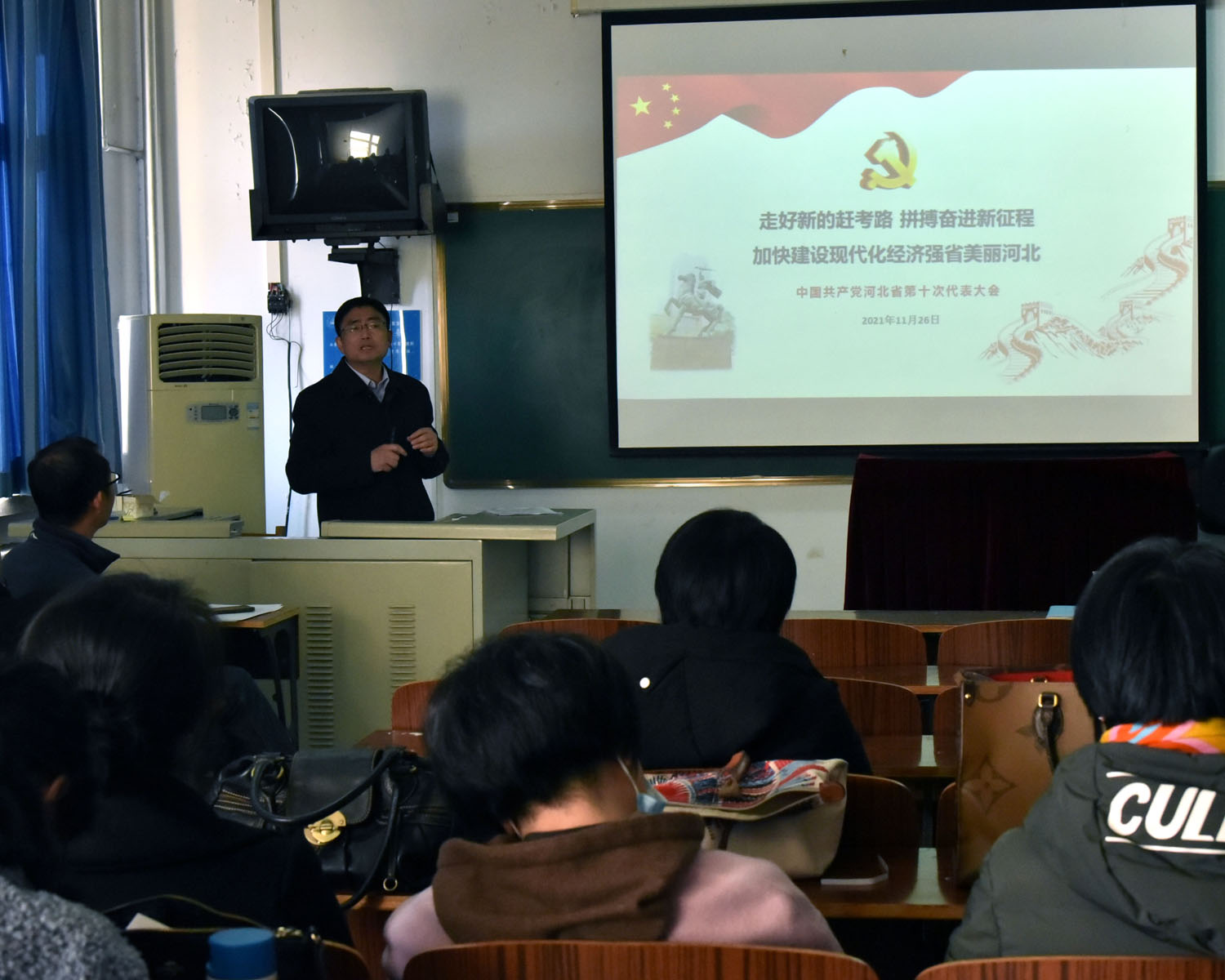12月13日,beat365官网组织河北省第十次党代会精神宣讲会,深入学习贯彻党代会精神。院长张润作了专题宣讲,外院全体领导和教职工参加。