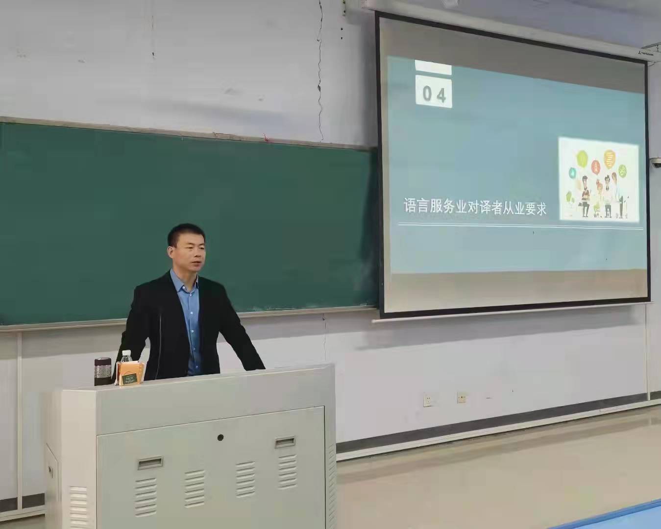 本次系列讲座主题为中国语言服务业发展趋势及MTI学生职业生涯规划,刘智宽老师为师生介绍了语言服务业的总体概况、全球市场需求和翻译领域的重大变化,着重分析了中国语言服务业发展趋势、MTI学生应对策略以及语言服务业对从业者要求。