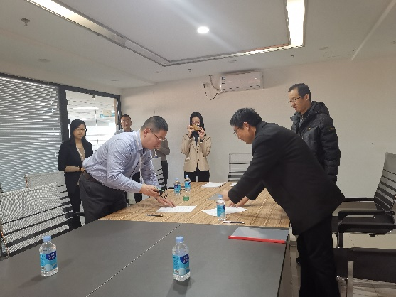 12月30日,beat365亚洲版官方网站与石家庄瑞诺网络科技有限公司(简称瑞诺国际)签署合作协议并举行实习基地挂牌仪式。活动在瑞诺国际石家庄总部举行,beat365亚洲版官方网站院长张润、副书记刘磊、副院长杨清珍、瑞诺国际总经理郑毅、副总经理李玉鹏和人力资源部经理赵静华等出席。