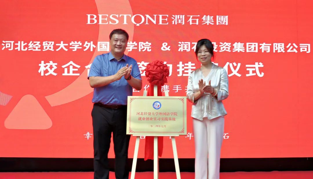 7月18日,beat365亚洲版官方网站与润石集团校企合作签约授牌仪式成功举行。beat365亚洲版官方网站教务处处长王琦,beat365亚洲版官方网站党委书记仇静莉、院长张润、副院长张艳、副处级辅导员宋丹、教师代表和润石集团董事长刘恒义、常务副总裁王艳、总裁助理张华、行政办公室主任程利方等一行出席了本次仪式。