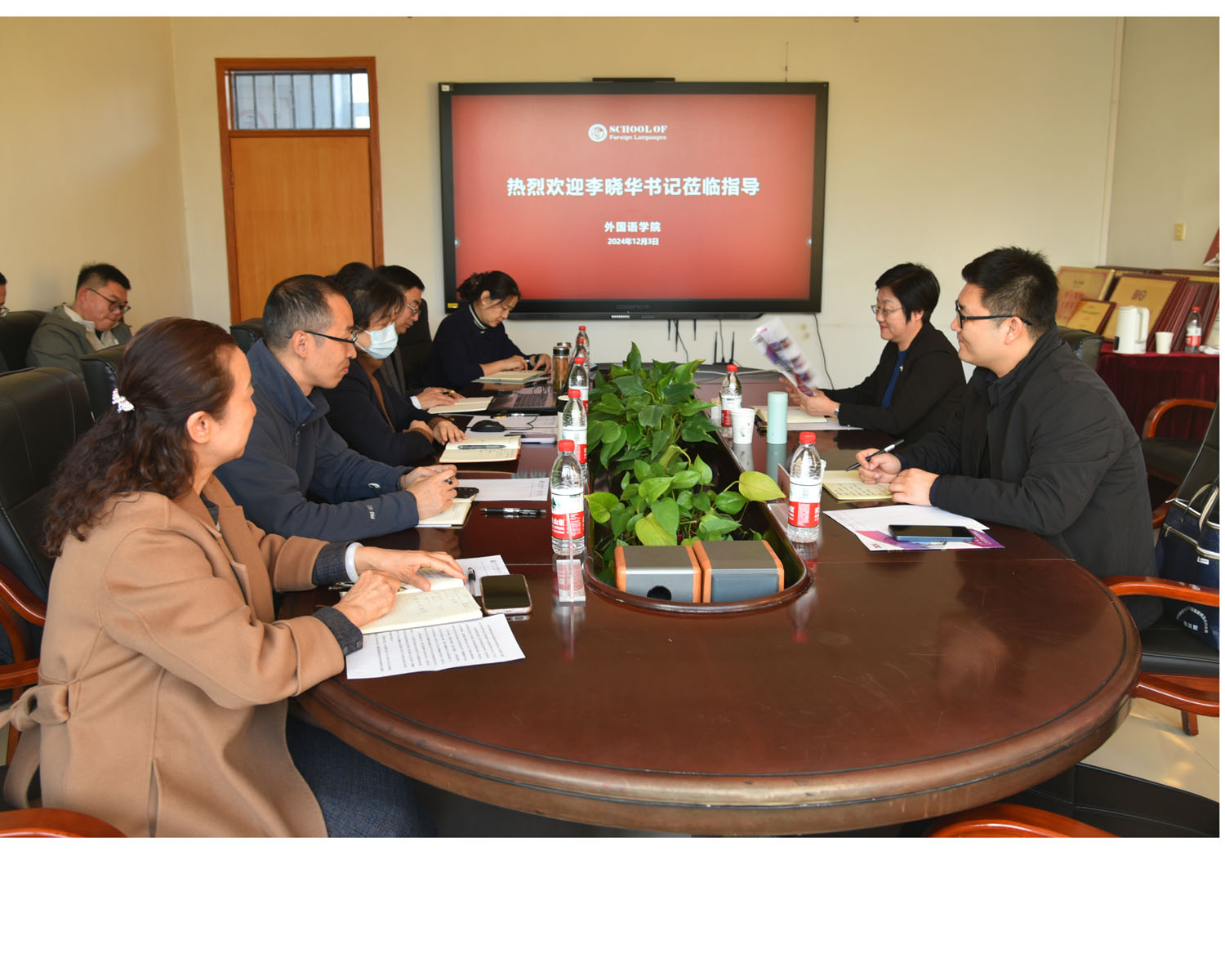 12月3日,校党委书记李晓华、党委办公室副主任米龙一行到beat365亚洲版官方网站开展调研并指导工作,学院领导班子成员、系主任、教师代表、行政科室人员参会。